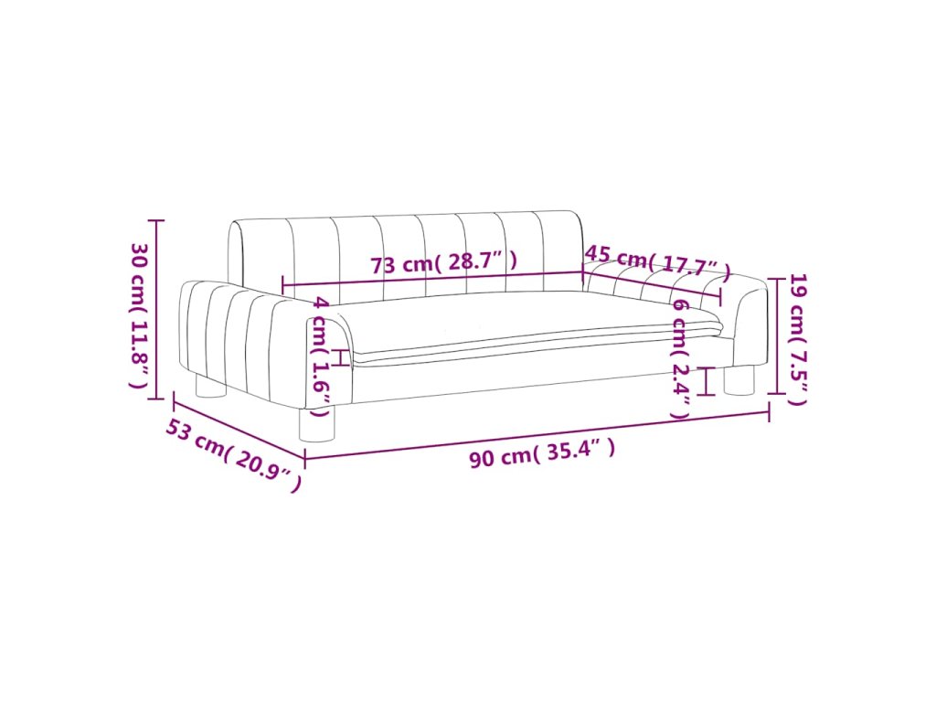 - Pevný a odolný rám: Rám z masívneho borovicového dreva zaisťuje robustnosť a odolnosť pohovky pre psa. Štyri nohy tiež zvyšujú stabilitu.