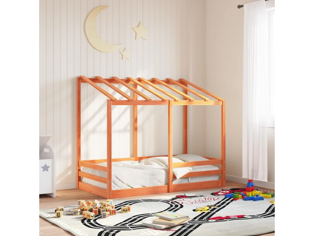 Multidom Detská posteľ so strechou voskovohnedá 70x140 cm borovic. masív