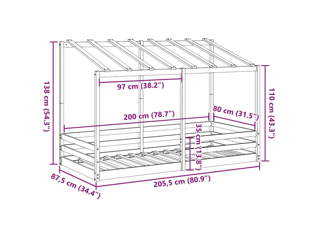 Multidom Detská posteľ so strechou voskovohnedá 80x200 cm borovic. masív