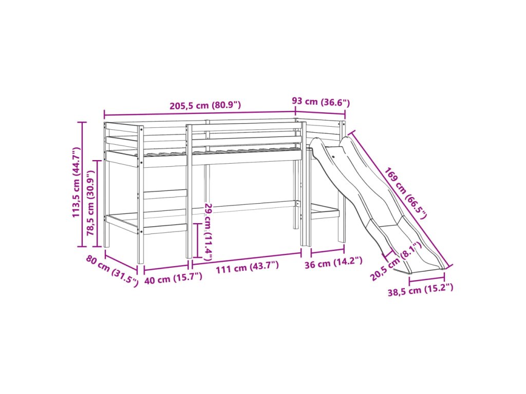 Táto detská poschodová posteľ je vyrobená z masívneho borovicového dreva a je určená na zábavu a optimalizáciu priestoru.