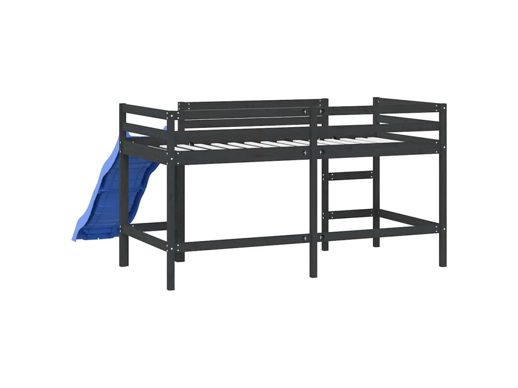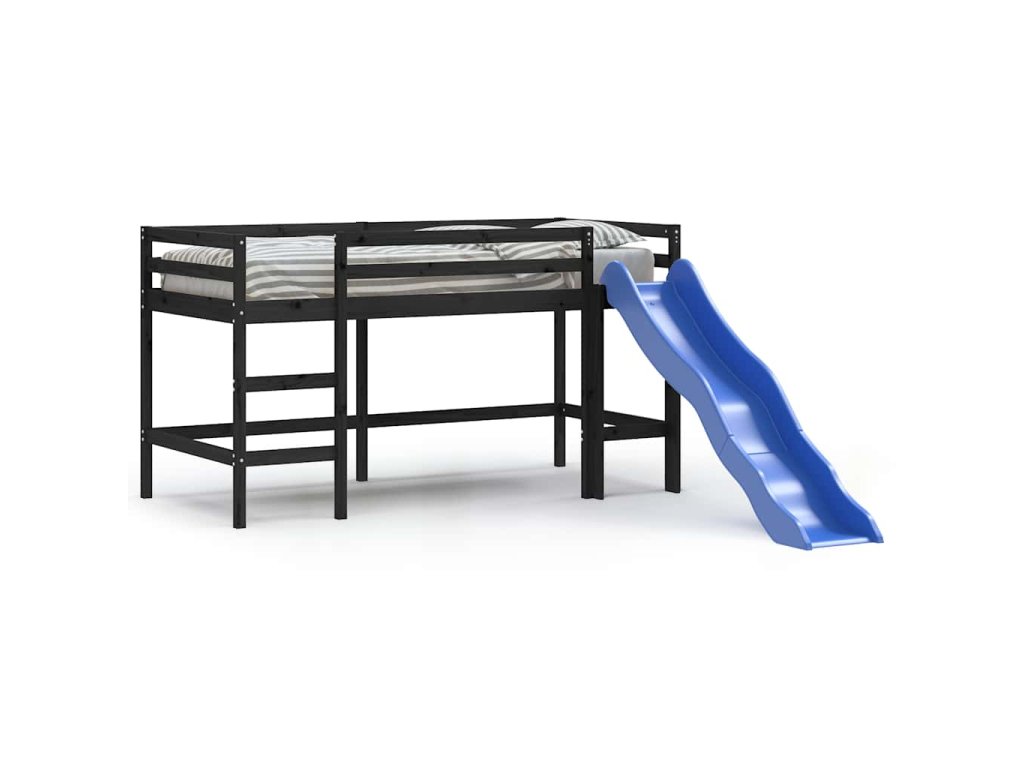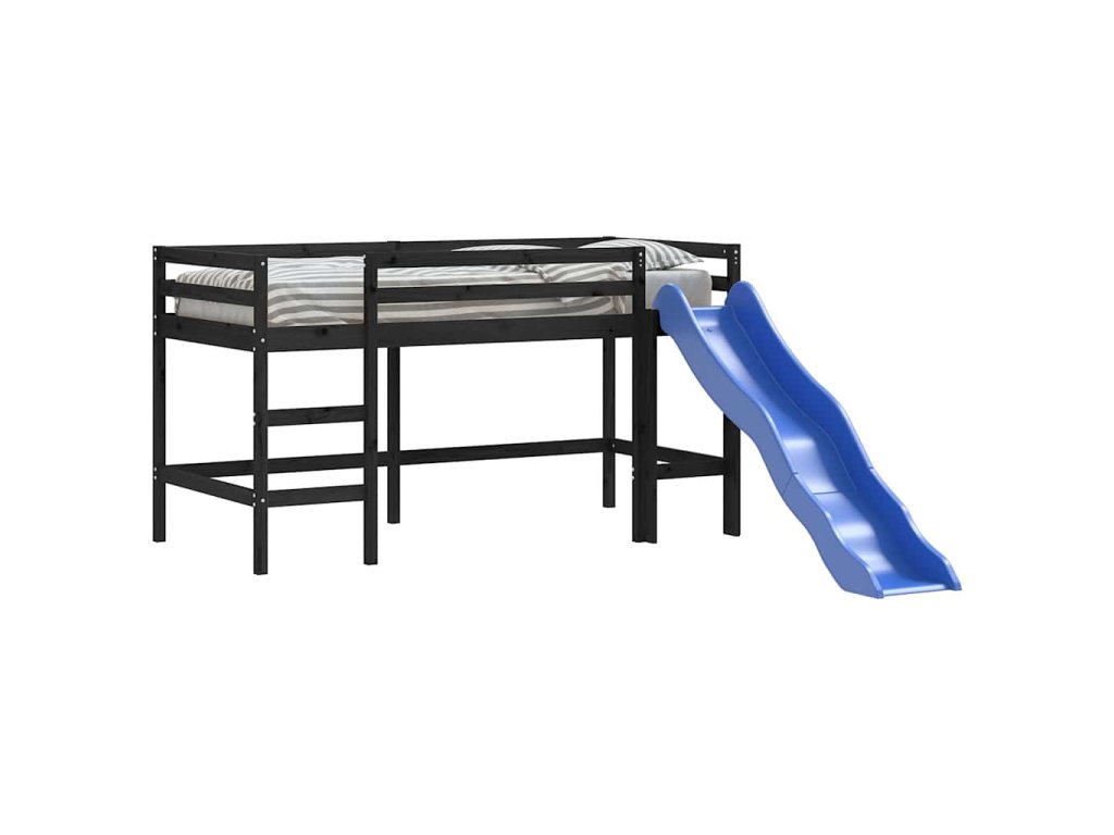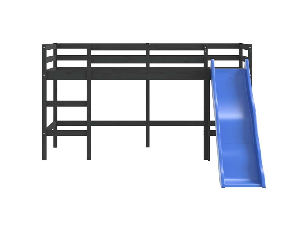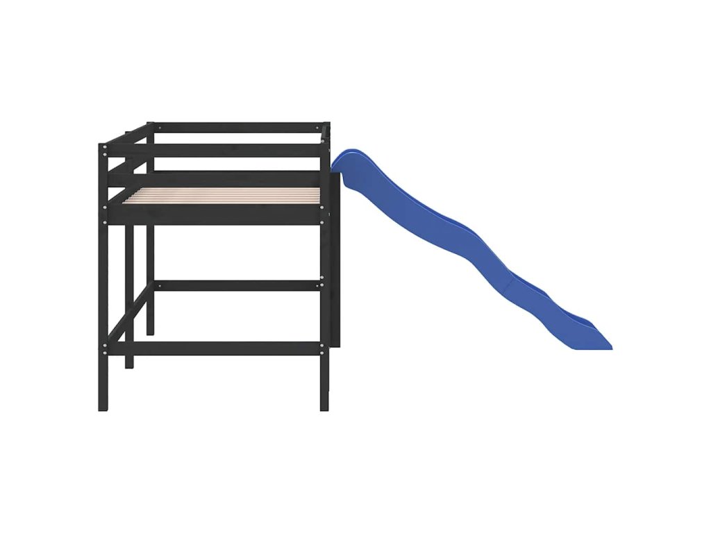 Multidom Detská vyvýšená posteľ šmýkačka čierna 80x200 cm masív.borovica