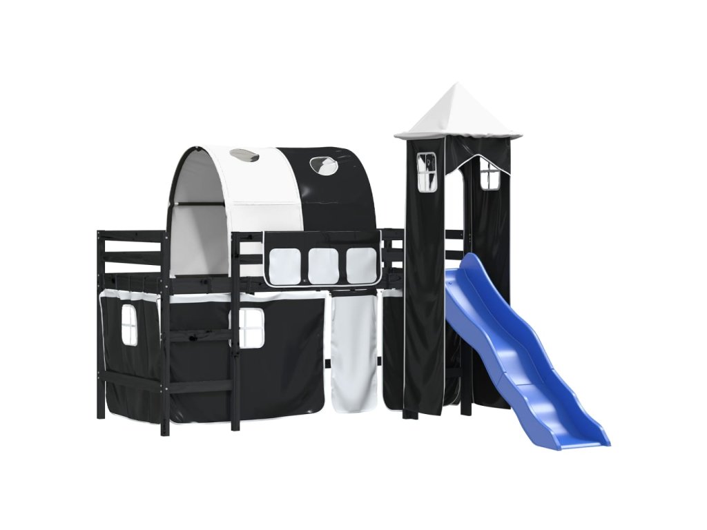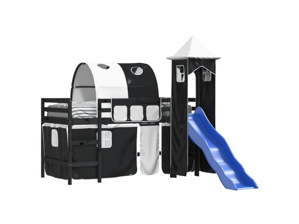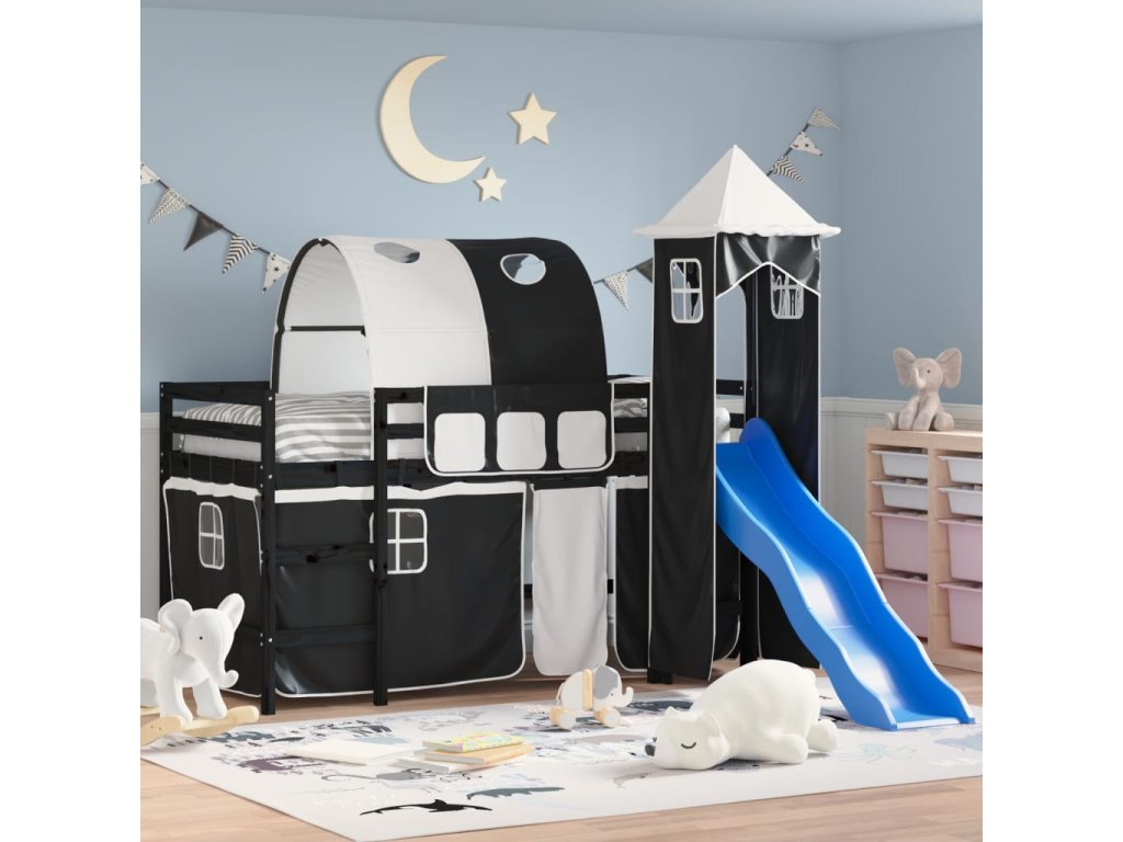 Multidom Detská vyvýšená posteľ veža bielo-čierna 80x200 cm borovica