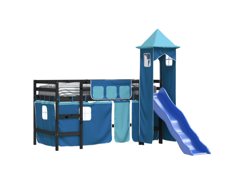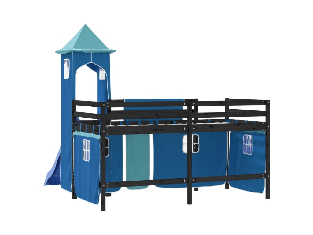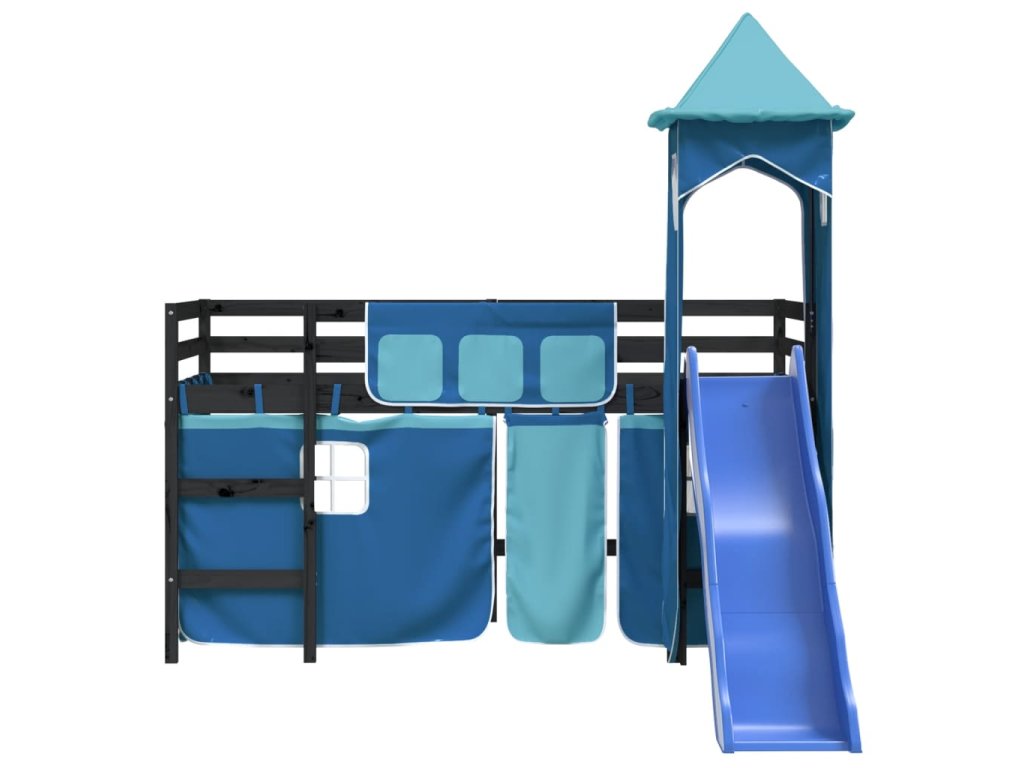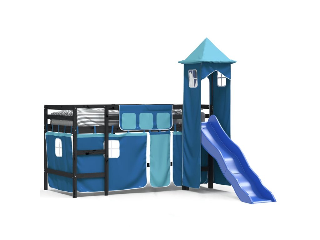 Multidom Detská vyvýšená posteľ veža modrá 80x200 cm masívna borovica