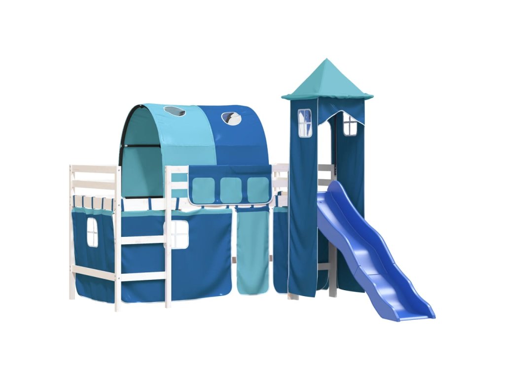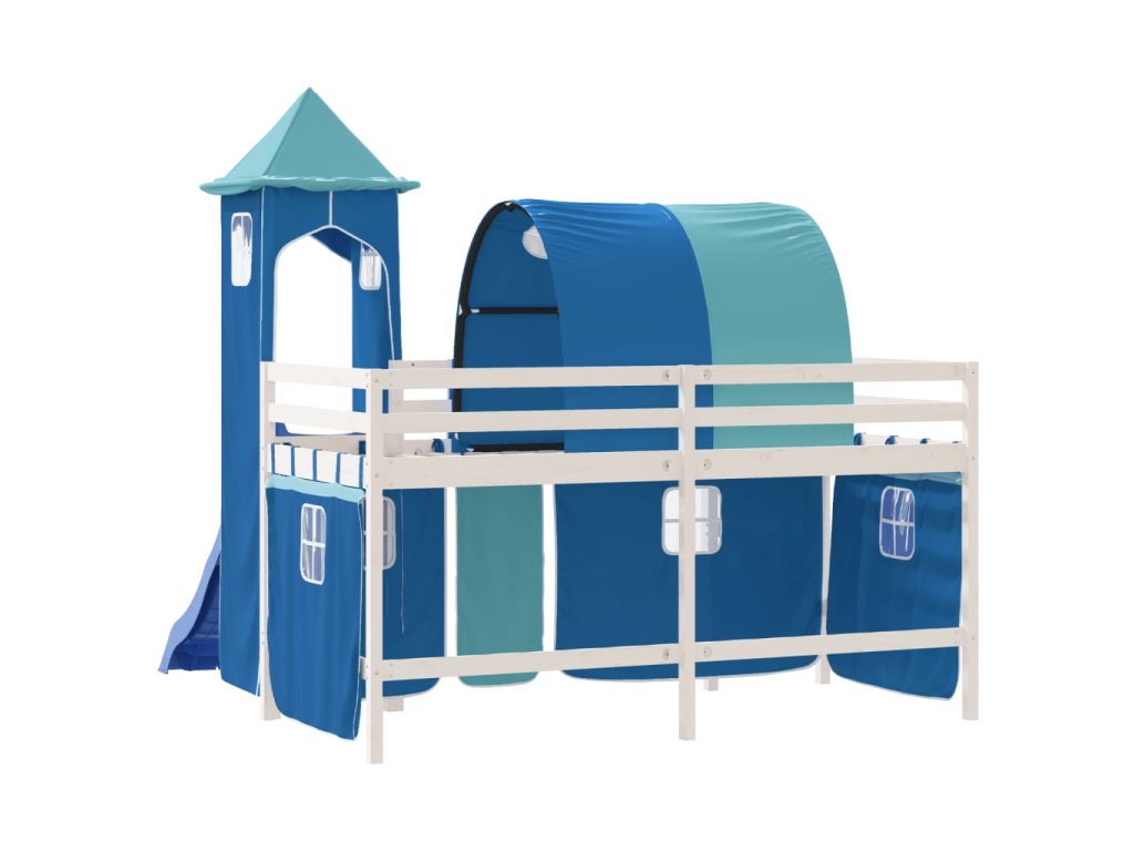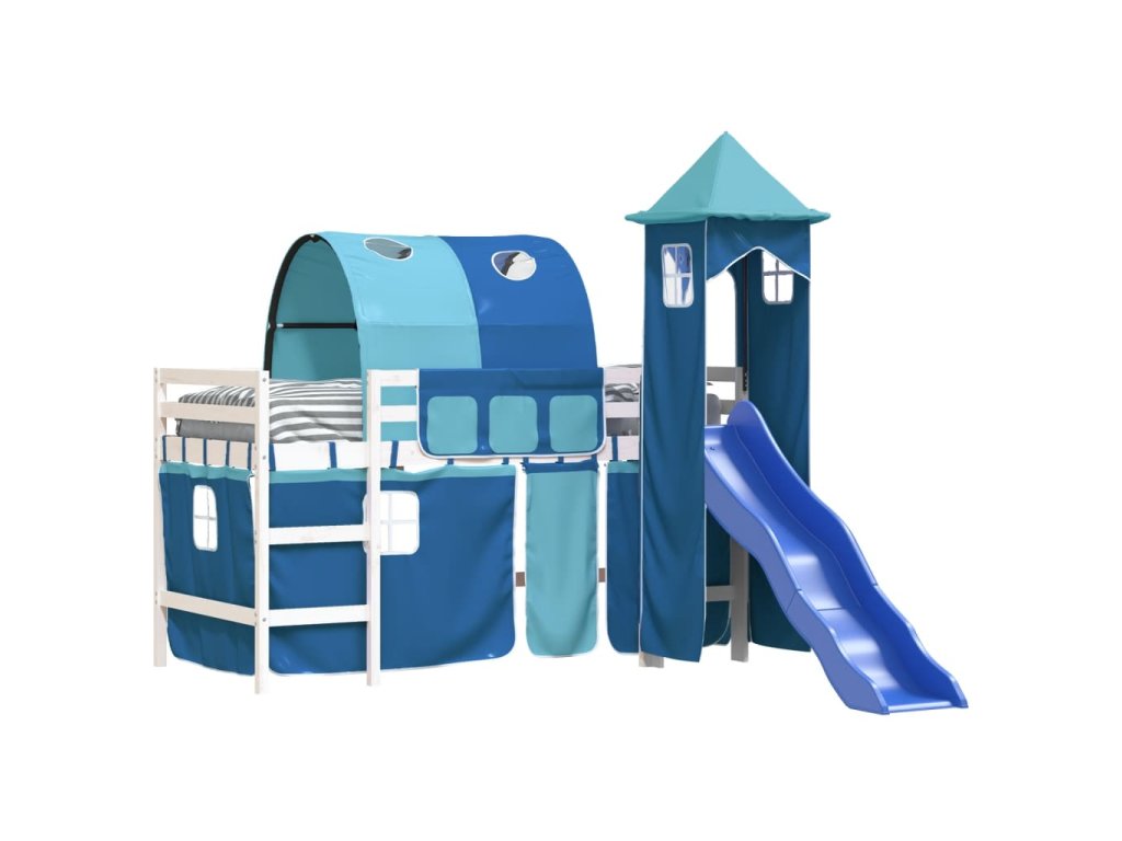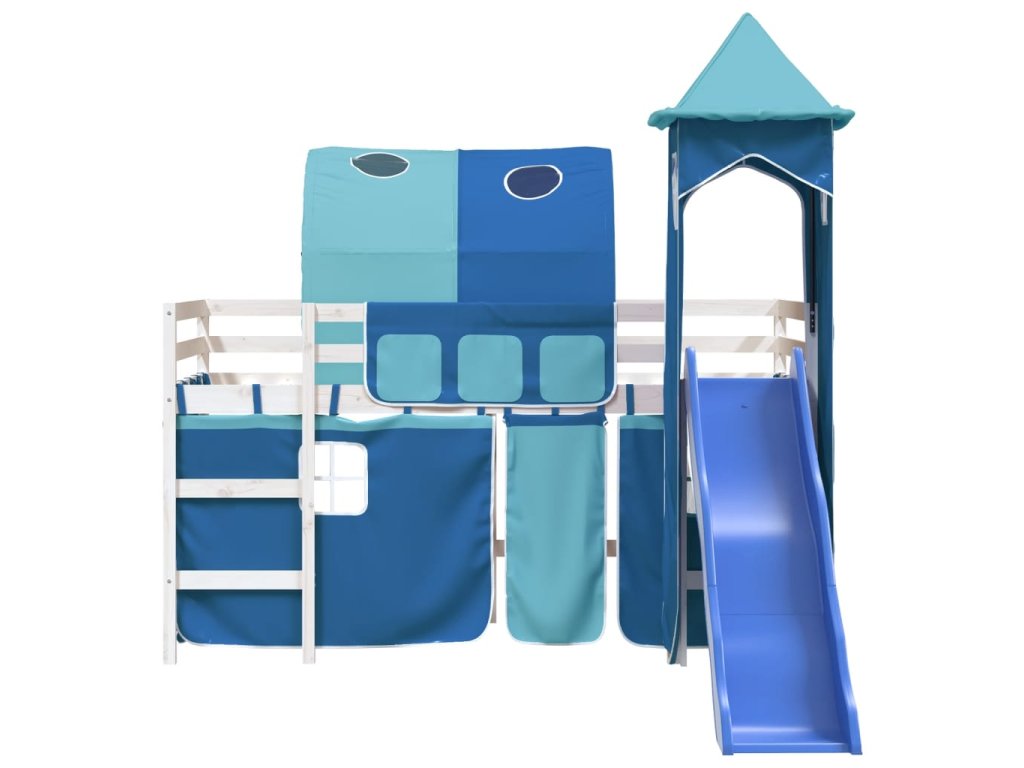 Multidom Detská vyvýšená posteľ veža modrá 80x200 cm masívna borovica