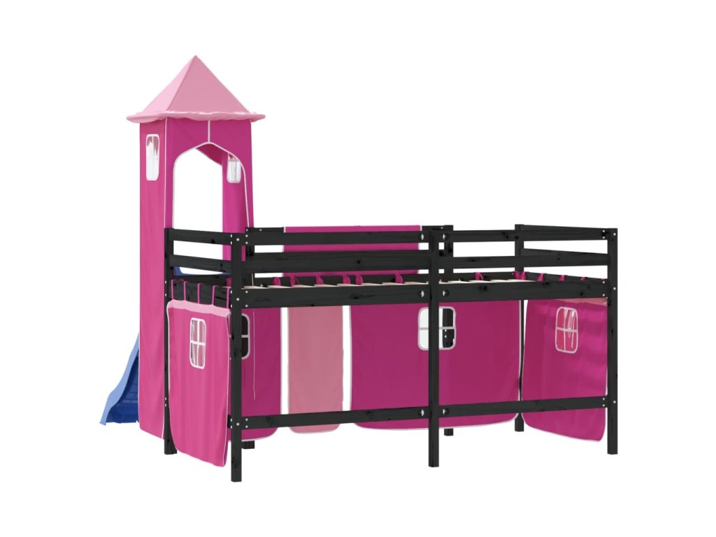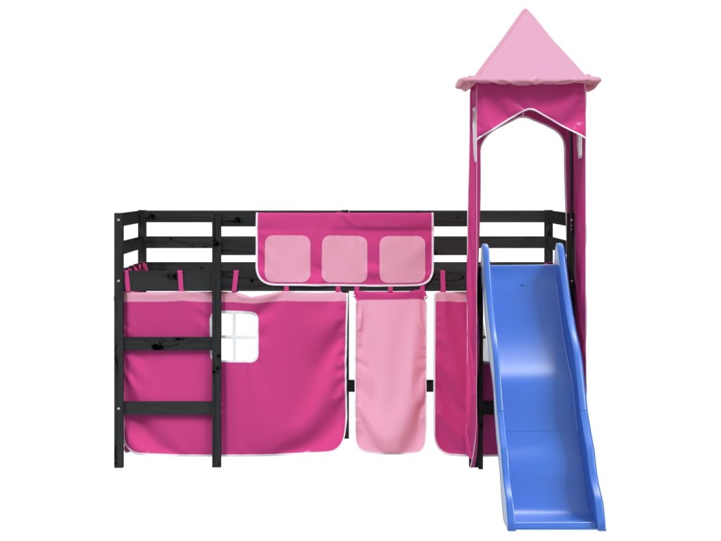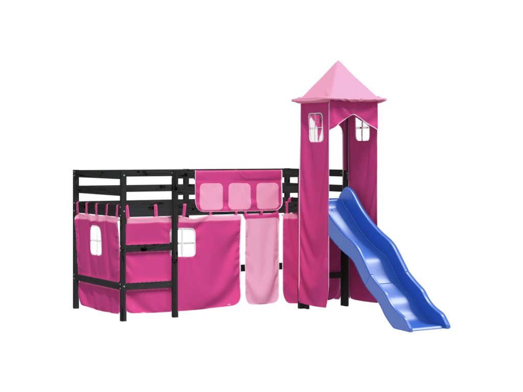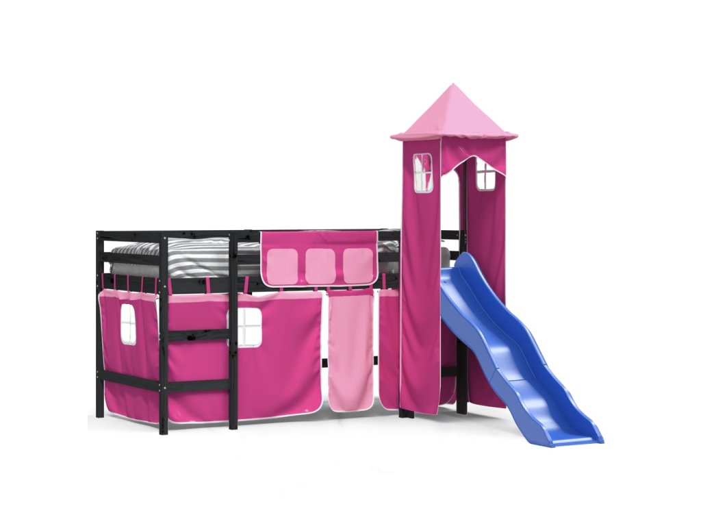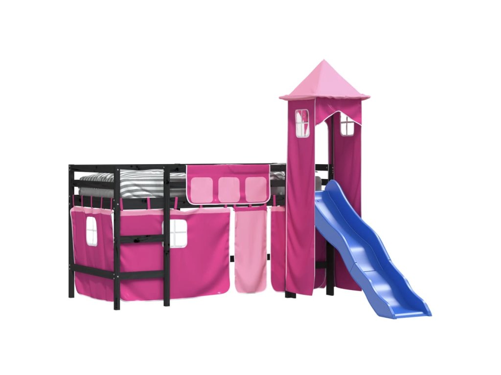 Multidom Detská vyvýšená posteľ veža ružová 80x200 cm masívna borovica