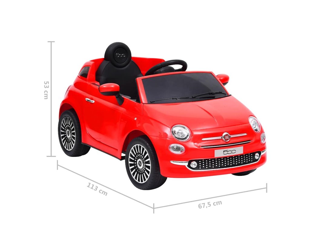 Pojazdné autíčko má volant, nízko položené sedadlo s bezpečnostným pásom a ergonomicky tvarované operadlo, ktoré uľahčujú nastupovanie a vystupovanie. Detské elektrické autíčko zrýchľuje pomaly a plynulo. Elektrické autíčko Fiat 500 je okrem toho vybavené aj displejom s hudbou, a tak poskytuje jedinečný zážitok. Nachádzajú sa na ňom predné aj zadné svetlomety.