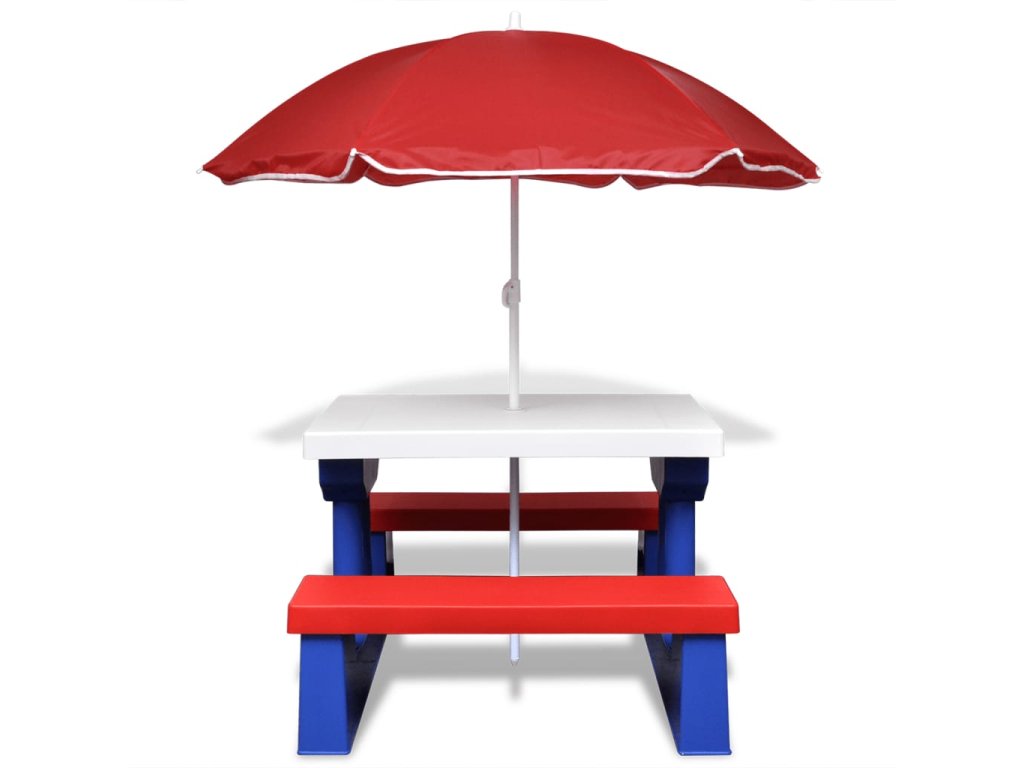 Multidom Detský piknikový stôl s lavičkami a slnečníkom, rôznofarebný