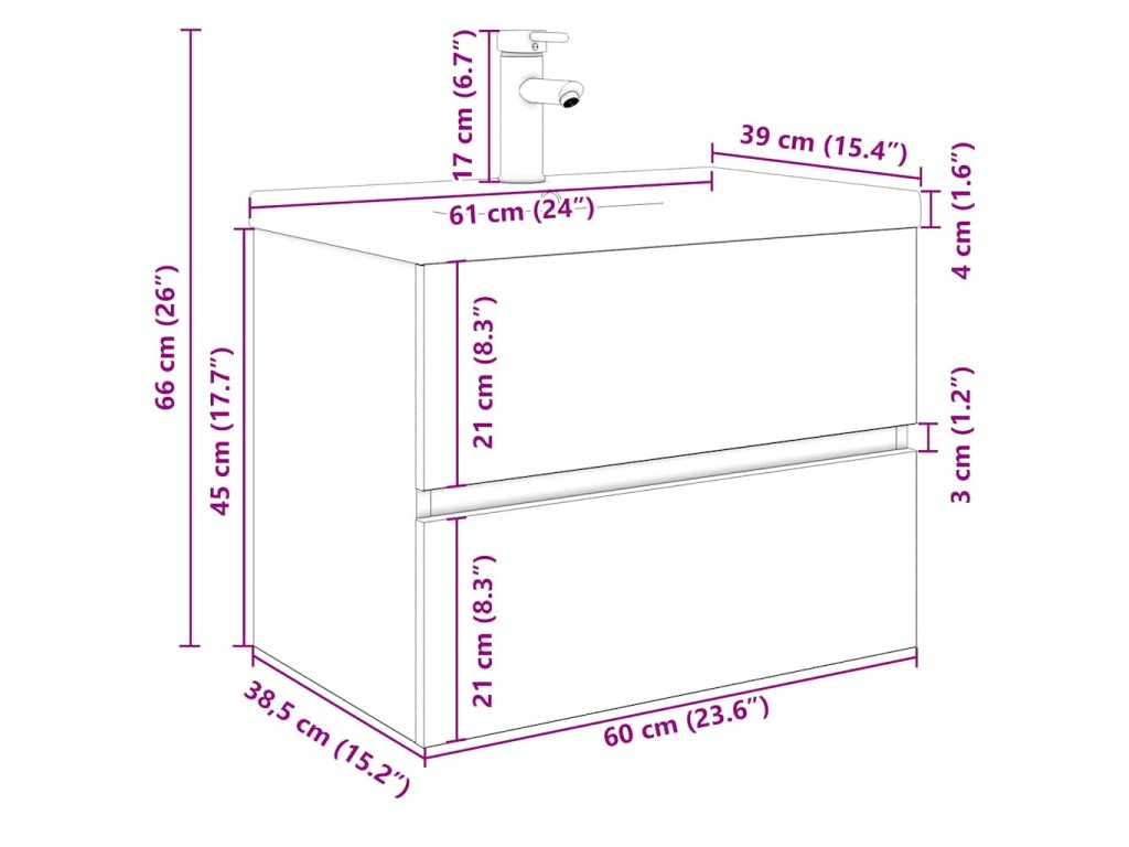 - Rozmery umývadla: 61 x 39 x 18 cm (D x Š x V)