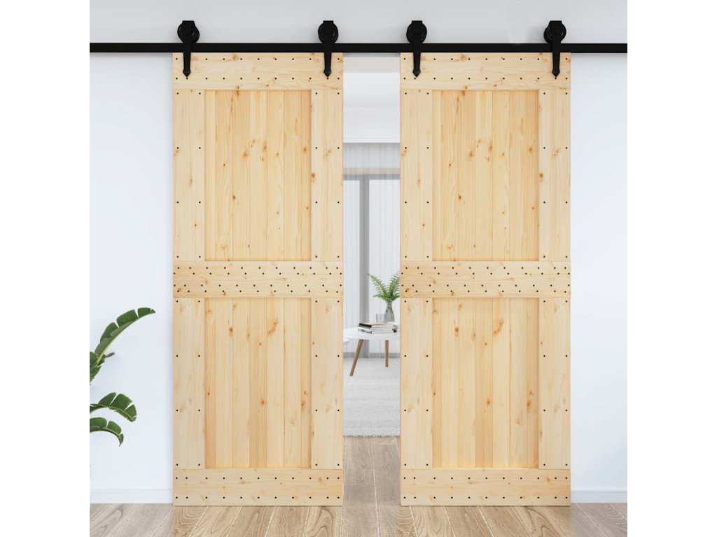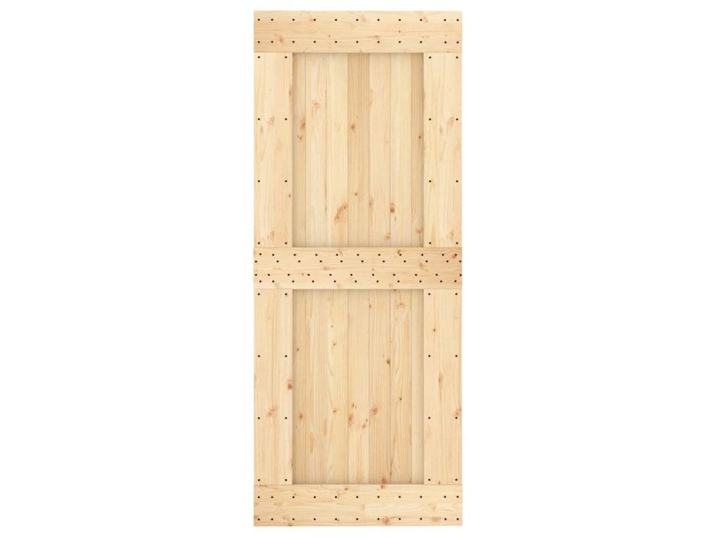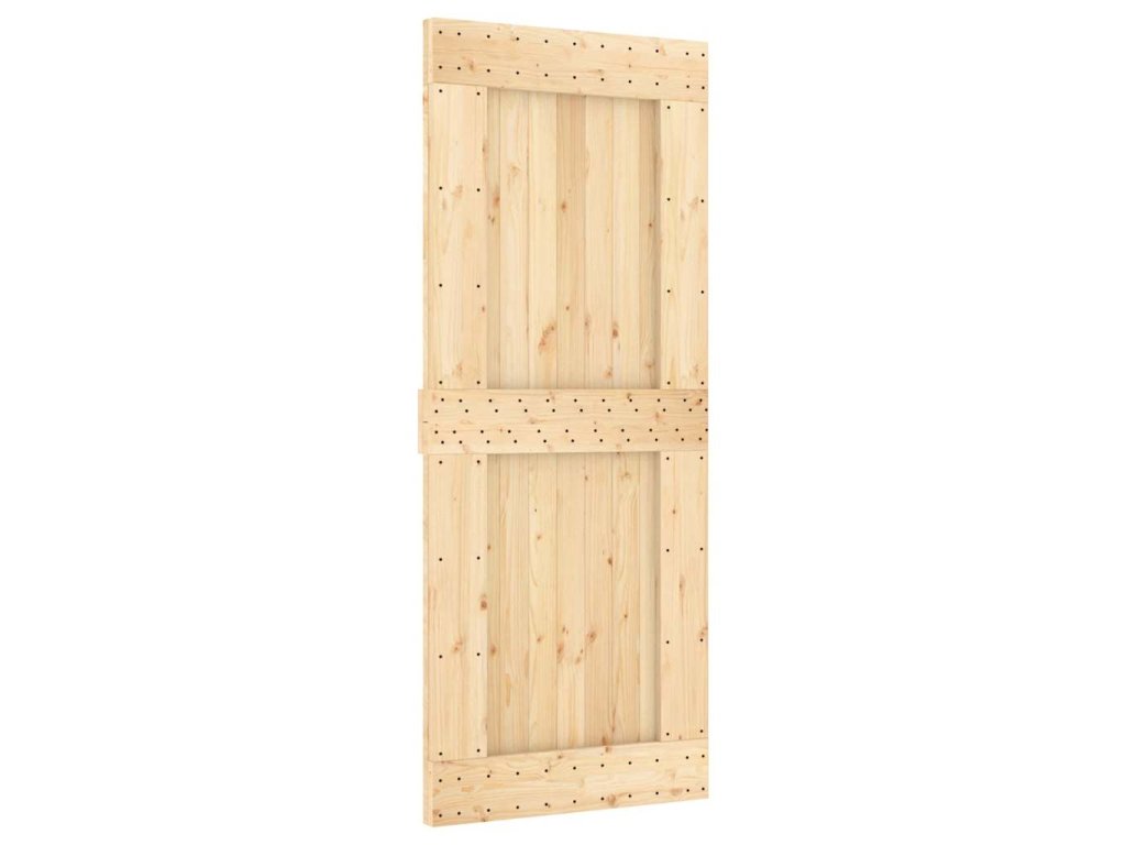 - Masívne borovicové drevo: Dvere sú vyrobené z masívneho borovicového dreva. Masívne borovicové drevo je krásny prírodný materiál. Borovicové drevo má rovnú štruktúru a uzly dodávajú materiálu jeho typický rustikálny vzhľad.
