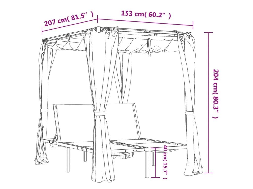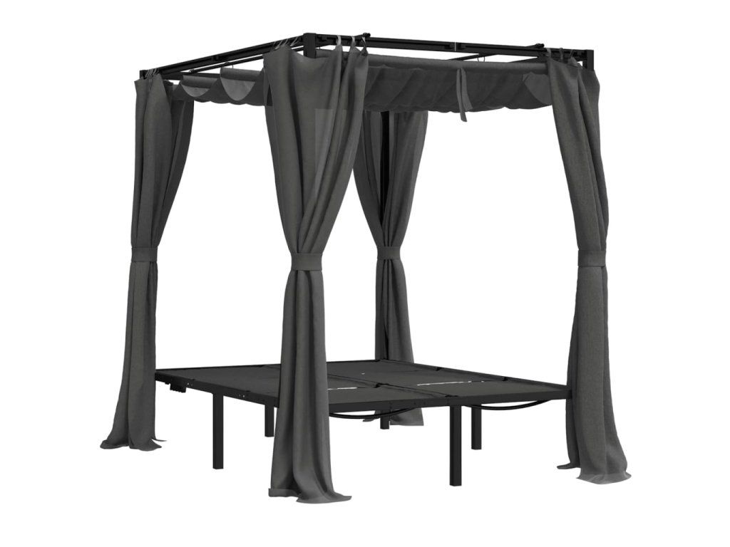 - Praktická strieška: Strieška a závesy dodávajú luxusný vzhľad a sú ideálne na ochranu pred hmyzom a poskytujú tieň a súkromie. Závesy sa dajú odstrániť a uskladniť, aby ste si mohli voľne užívať slnko.