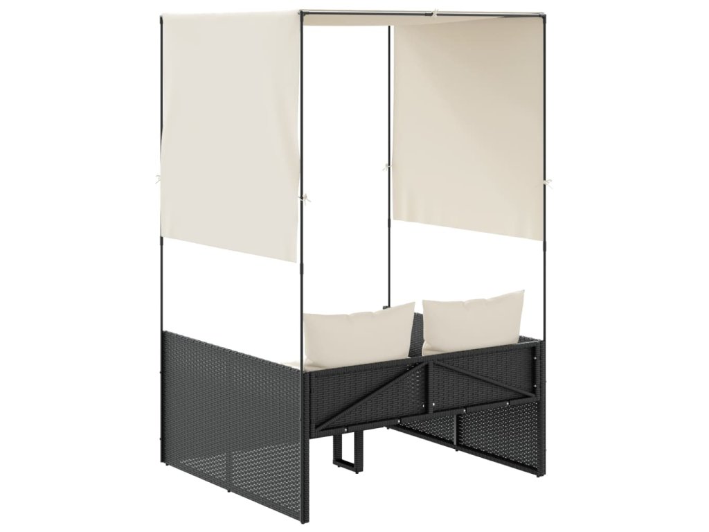 Multidom Dvojité ležadlo so strieškou a závesmi čierne polyratan