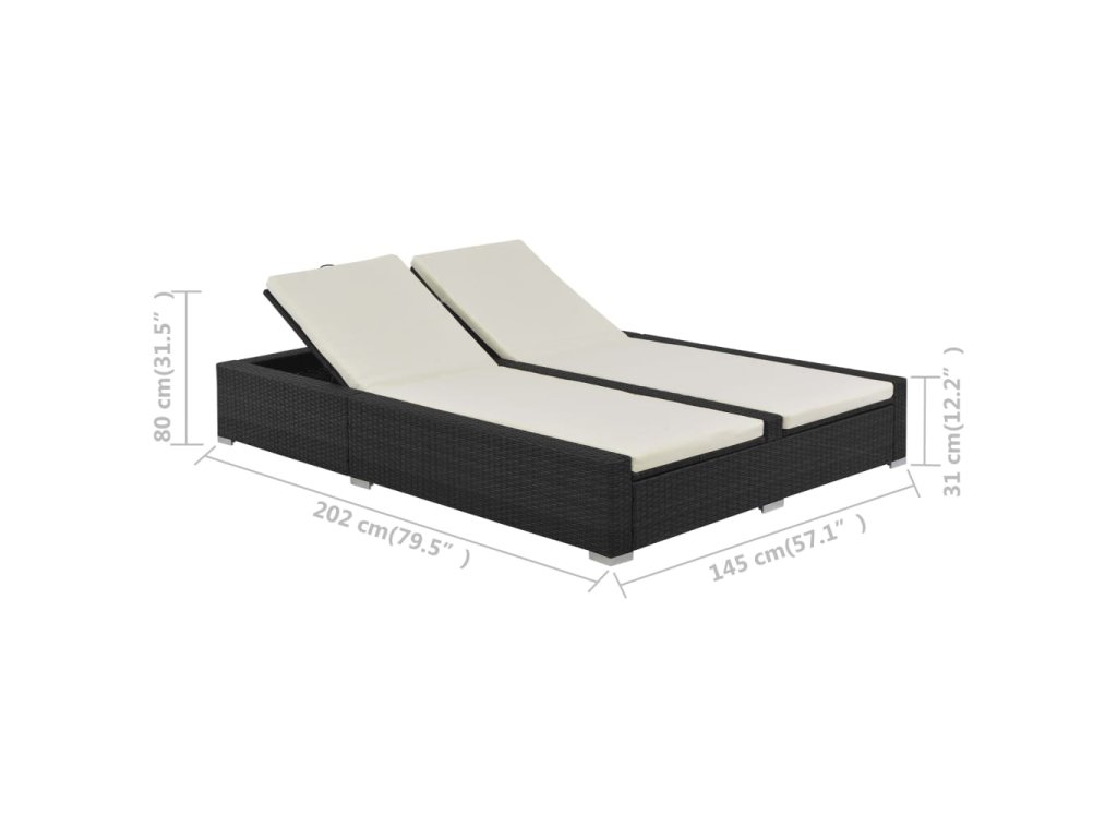 Multidom Dvojité záhradné ležadlo, polyratan, čierne