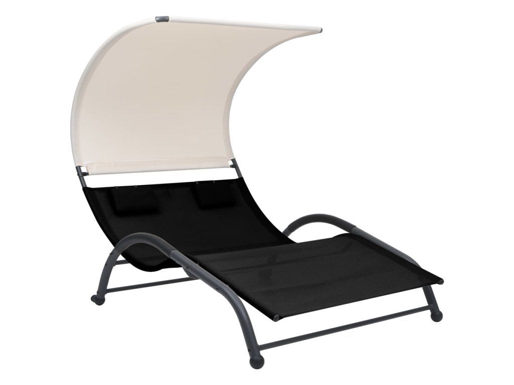 Multidom Dvojité záhradné ležadlo so strieškou textilén čierne