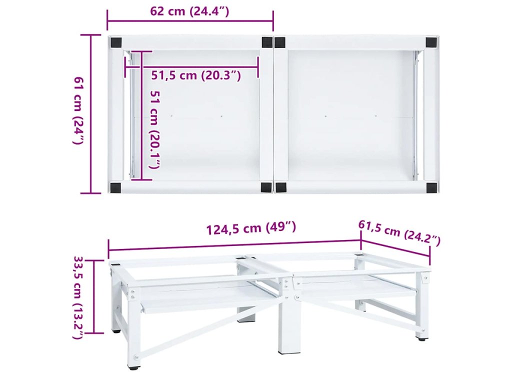 Náš dvojitý podstavec môžete použiť na zdvihnutie vašej práčky a sušičky nad úroveň podlahy do vhodnej pracovnej výšky, aby ste sa pri praní alebo vyberaní bielizne nemuseli príliš ohýbať.