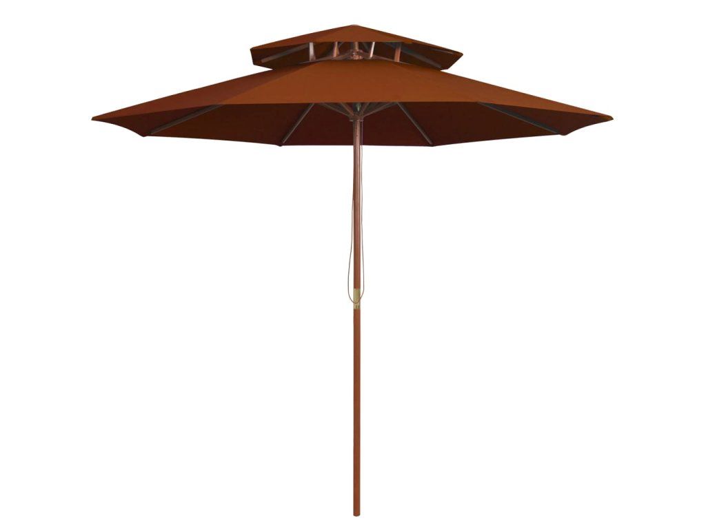 Multidom Dvojitý slnečník s drevenou tyčou tehlovočervený 270 cm