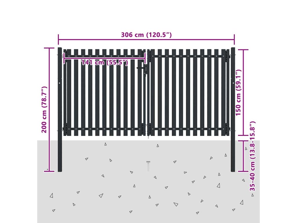 Brána je vyrobená z ocele s práškovou povrchovou úpravou, vďaka čomu je mimoriadne robustná. Záhradná brána s jednou zámkou, jednou kľúčkou a jedným kotviacim kolíkom je praktická a poskytuje optimálnu bezpečnosť.