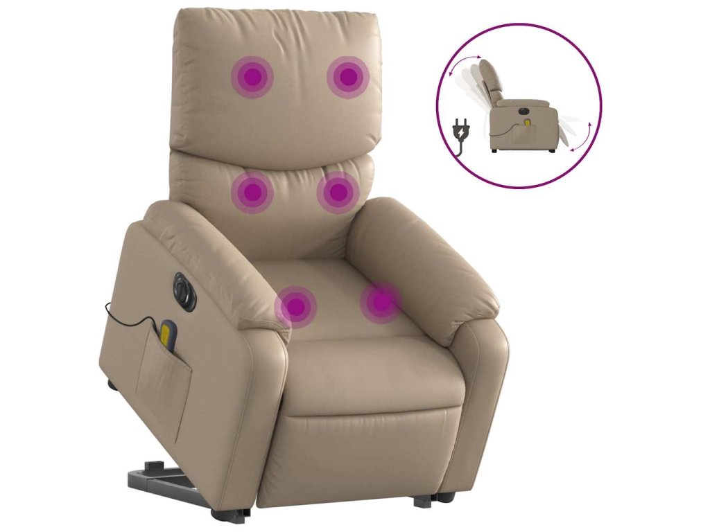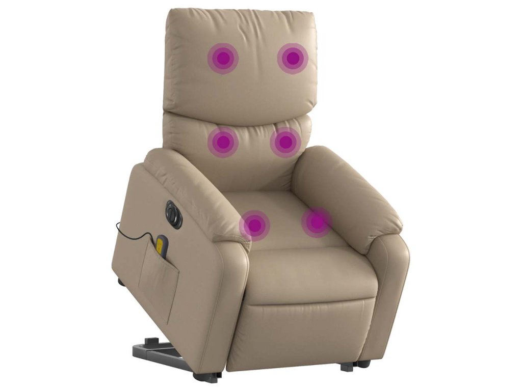 Multidom Elek. zdvíhacie masážne sklápacie kreslo kapučínové umelá koža