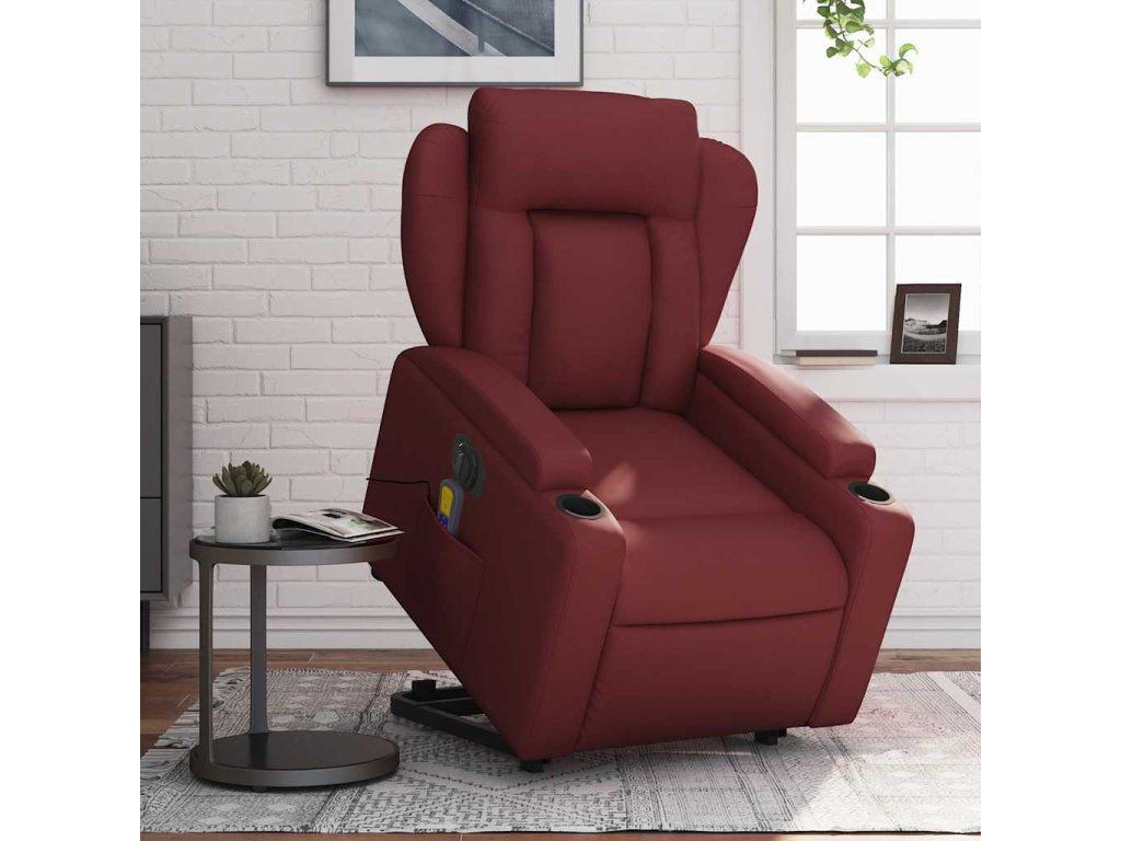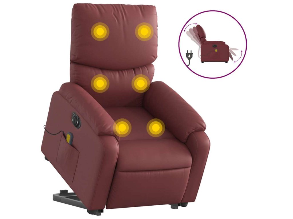 Multidom Elek. zdvíhacie masážne sklápacie kreslo vínové umelá koža