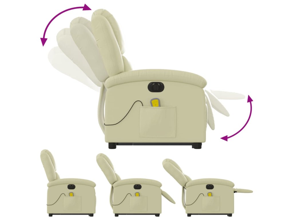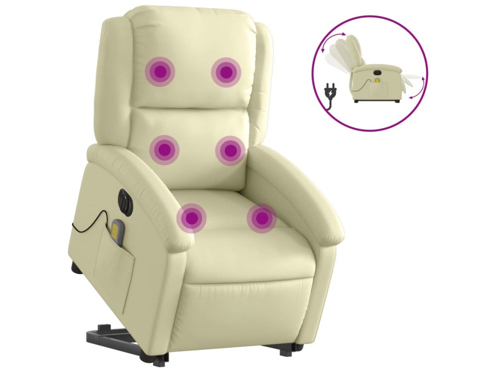 Multidom Elektric. zdvíhacie masážne sklápacie kreslo krémové pravá koža