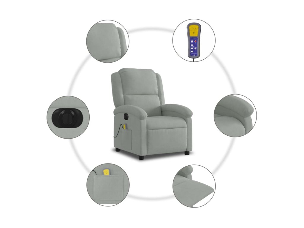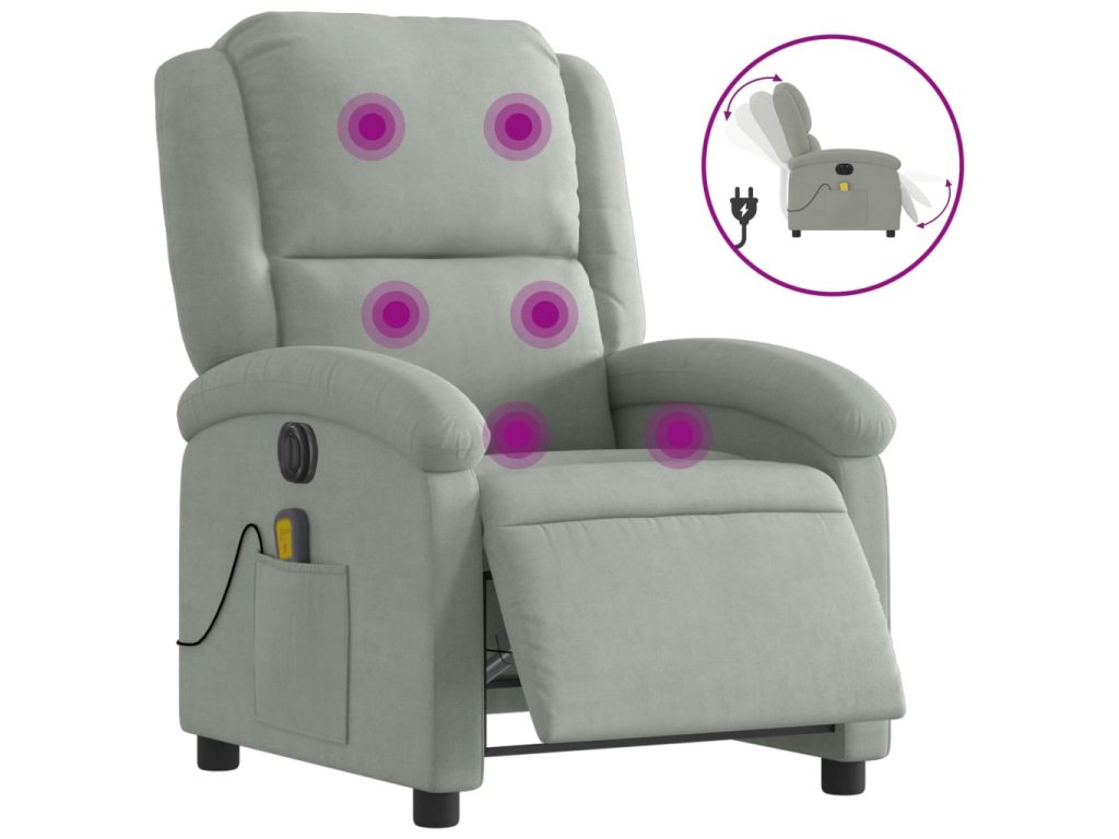 Multidom Elektrické masážne sklápacie kreslo bledosivé zamat
