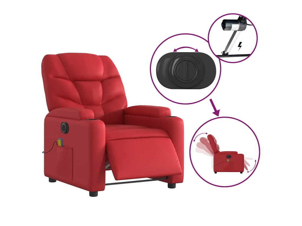 Multidom Elektrické masážne sklápacie kreslo červené umelá koža