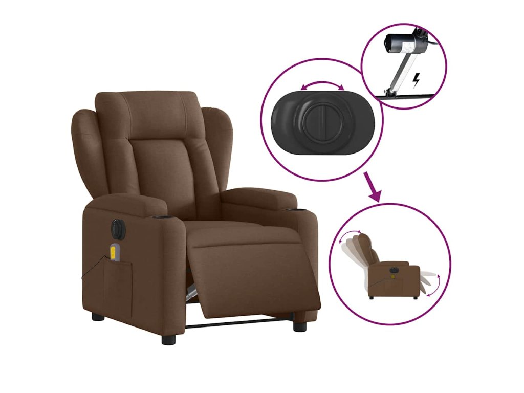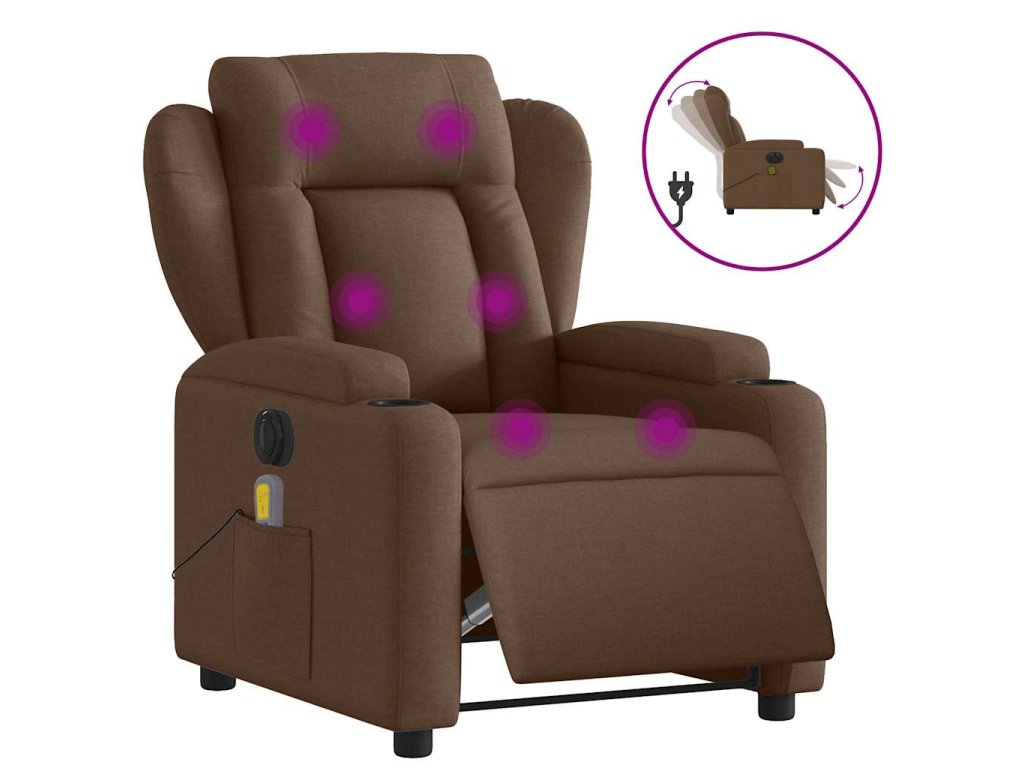 Multidom Elektrické masážne sklápacie kreslo hnedé látka