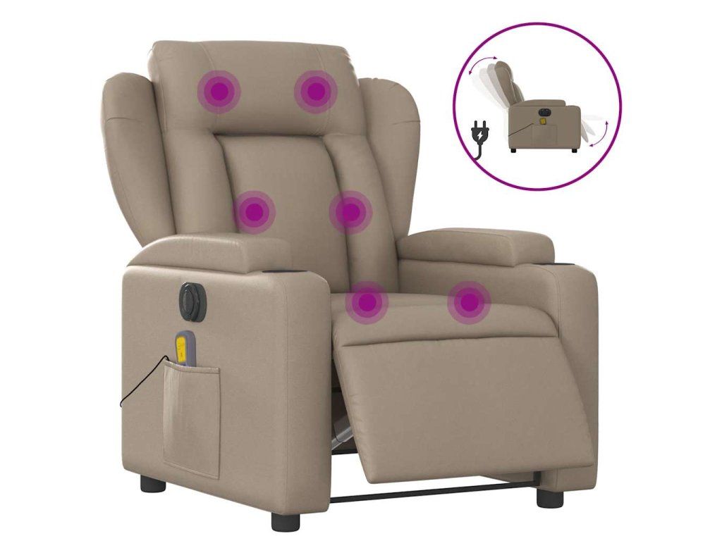 Multidom Elektrické masážne sklápacie kreslo kapučínové umelá koža