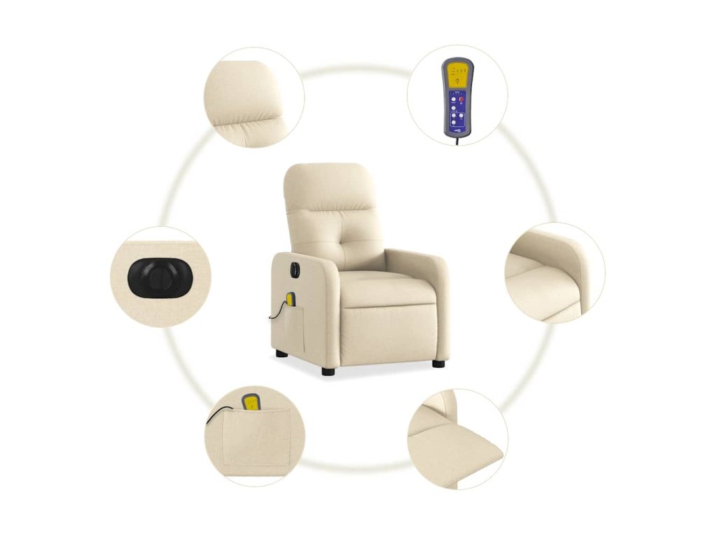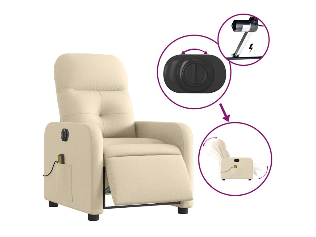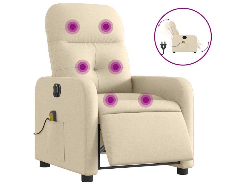 Multidom Elektrické masážne sklápacie kreslo krémové látka