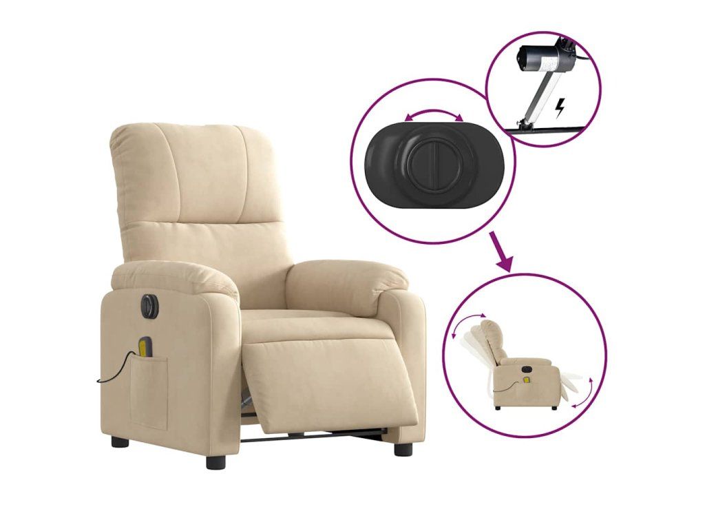Multidom Elektrické masážne sklápacie kreslo krémové mikrovláknová látka