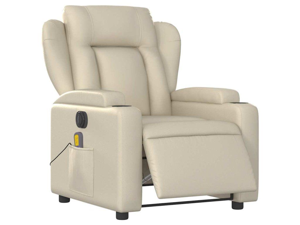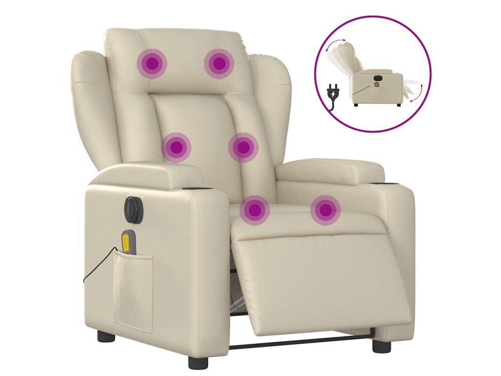 Multidom Elektrické masážne sklápacie kreslo krémové umelá koža