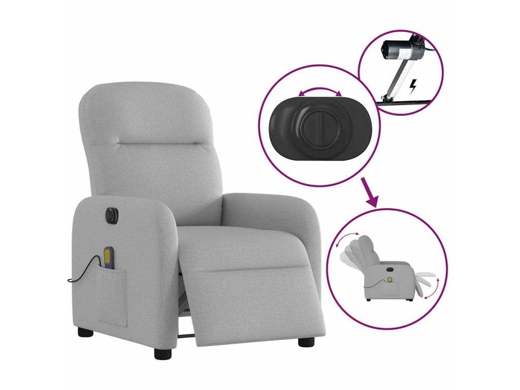 Multidom Elektrické masážne sklápacie kreslo oblakšedá látkové