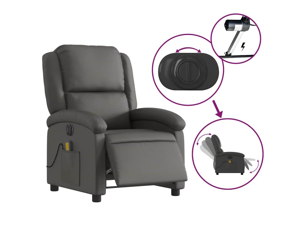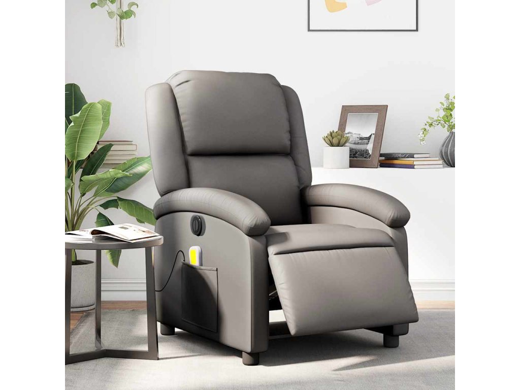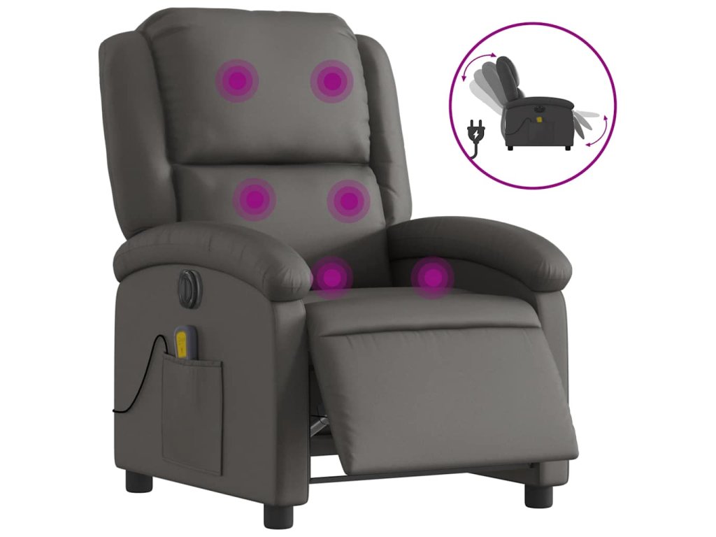 Multidom Elektrické masážne sklápacie kreslo sivé pravá koža