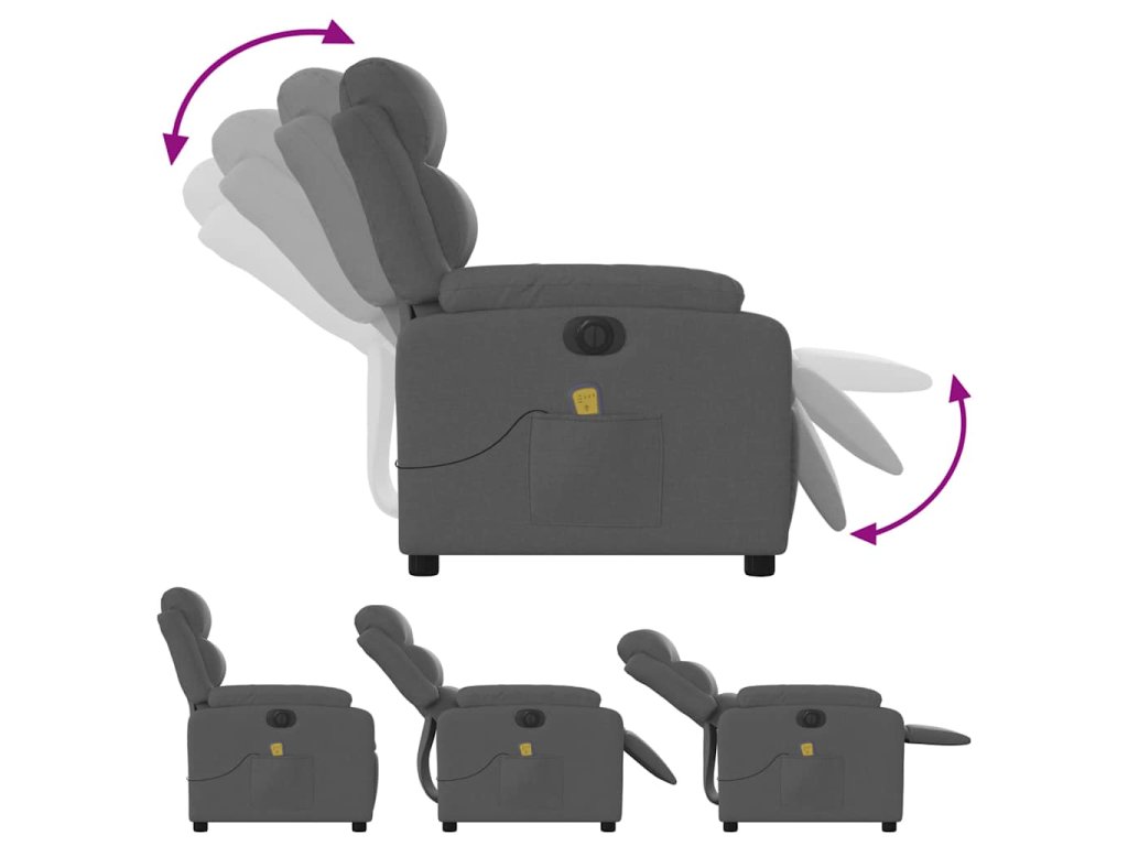 Multidom Elektrické masážne sklápacie kreslo tmavosivé látka
