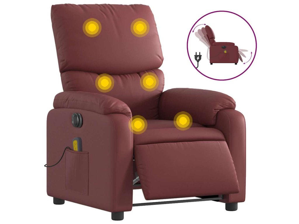 Multidom Elektrické masážne sklápacie kreslo vínovo červené umelá koža