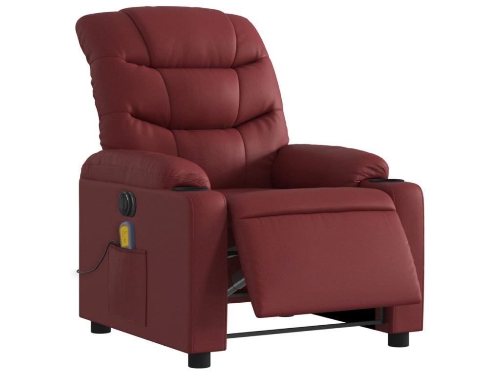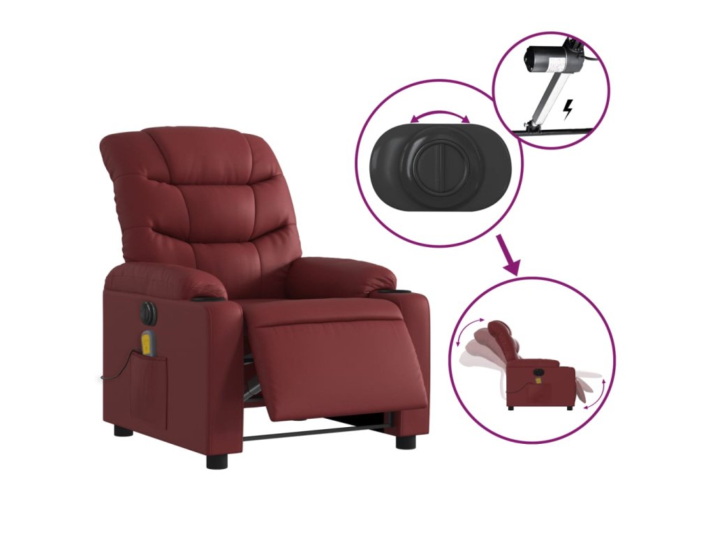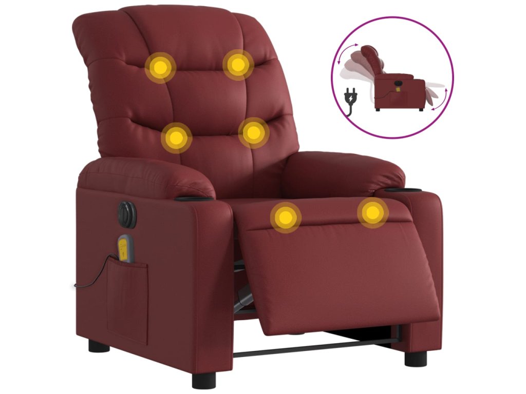 Multidom Elektrické masážne sklápacie kreslo vínovo červené umelá koža
