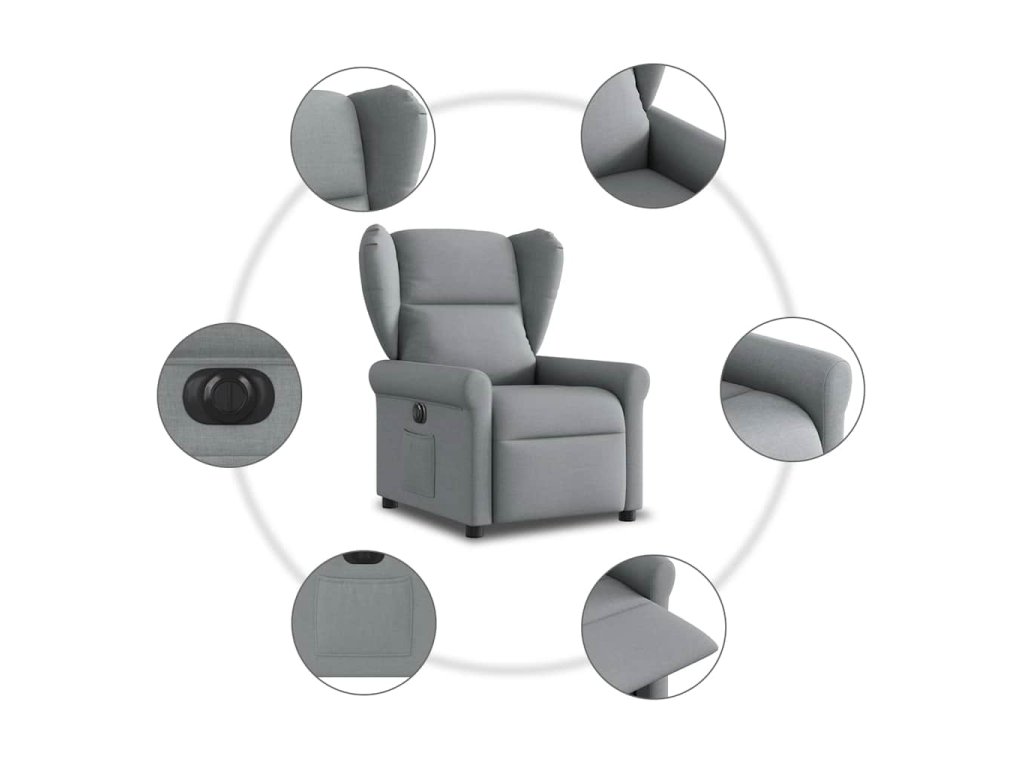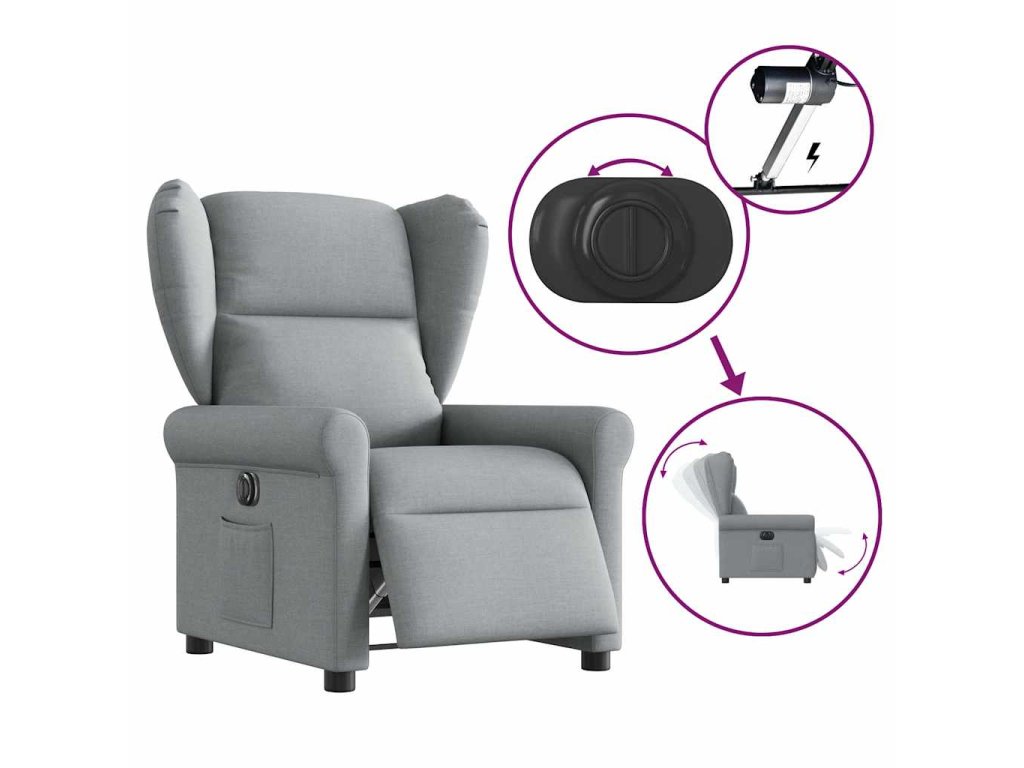 Multidom Elektrické sklápacie kreslo bledosivé látka