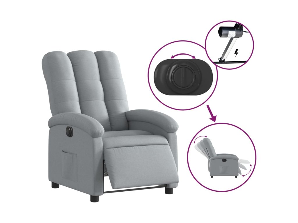 Multidom Elektrické sklápacie kreslo bledosivé látka