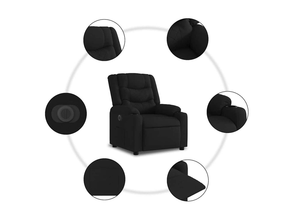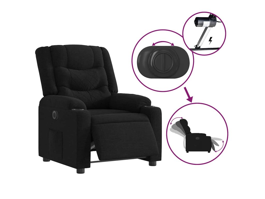 Multidom Elektrické sklápacie kreslo čierne látkové