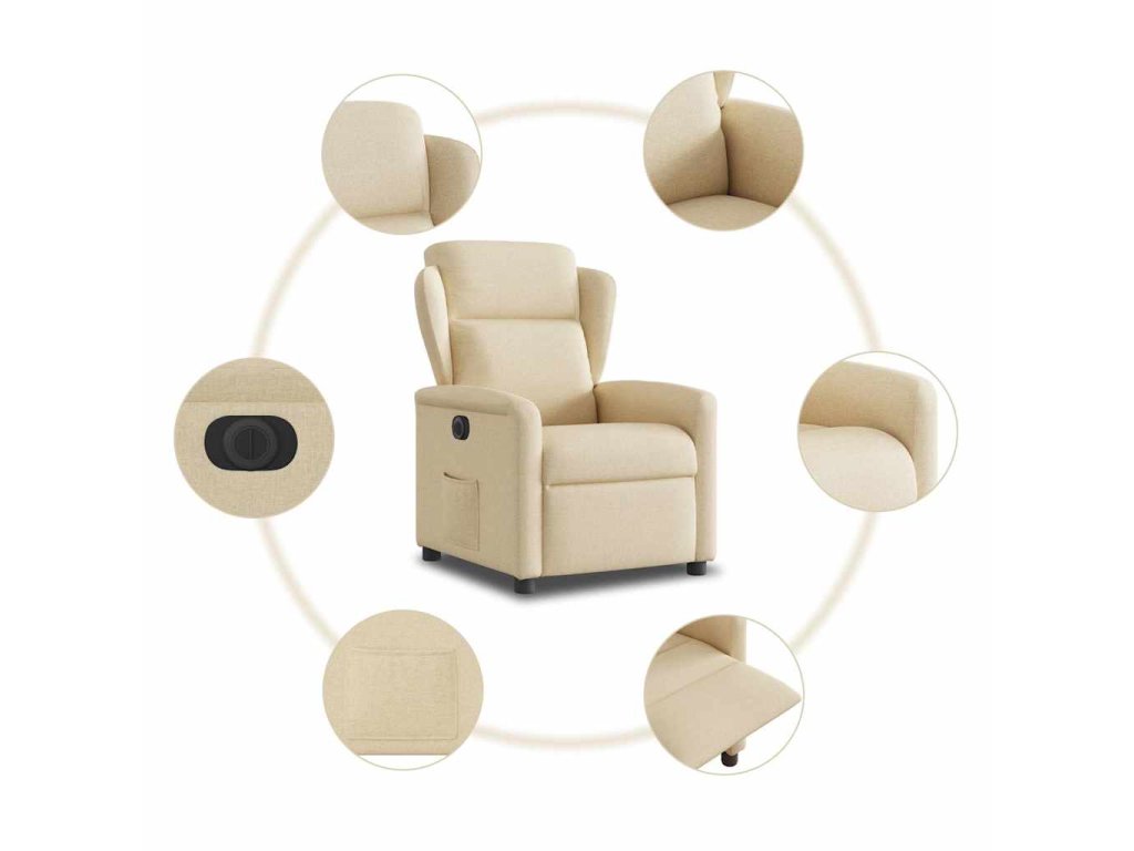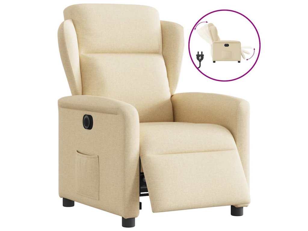 Multidom Elektrické sklápacie kreslo krémové látka