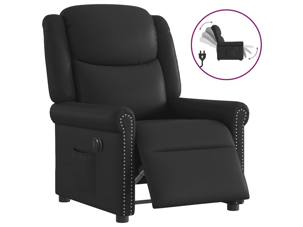 Multidom Elektrické sklápacie kreslo lesklé čierne umelá koža