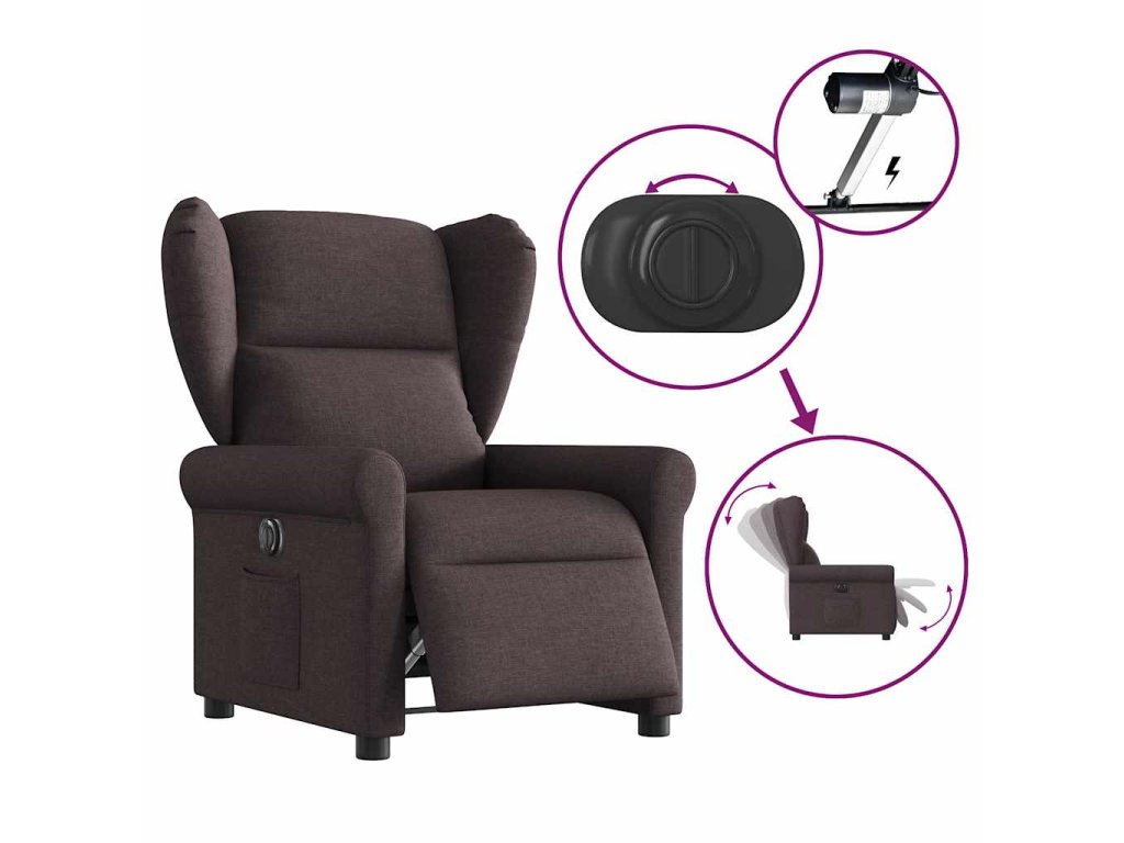 Multidom Elektrické sklápacie kreslo tmavohnedé látkové