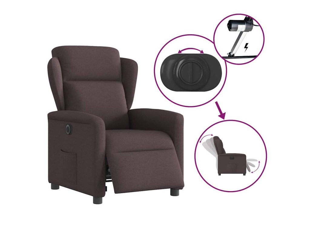Multidom Elektrické sklápacie kreslo tmavohnedé látkové