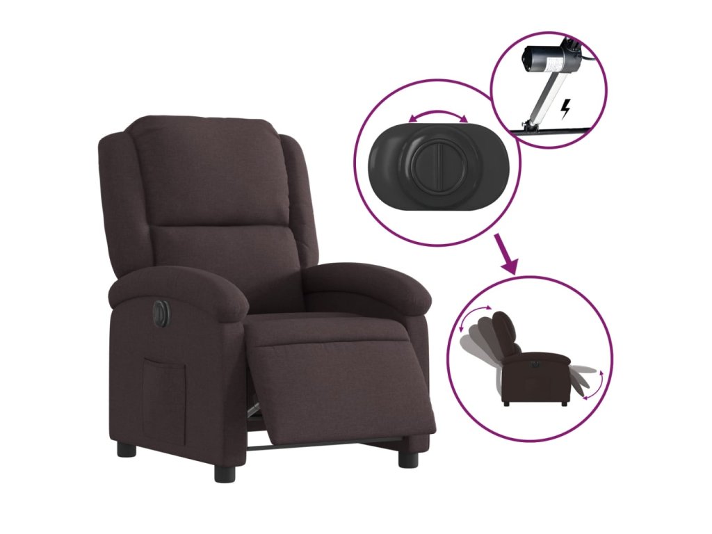 Multidom Elektrické sklápacie kreslo tmavohnedé látkové