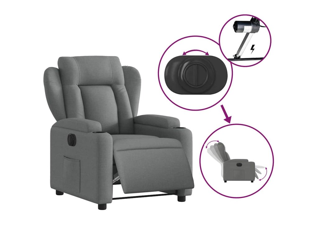 Multidom Elektrické sklápacie kreslo tmavosivé látka