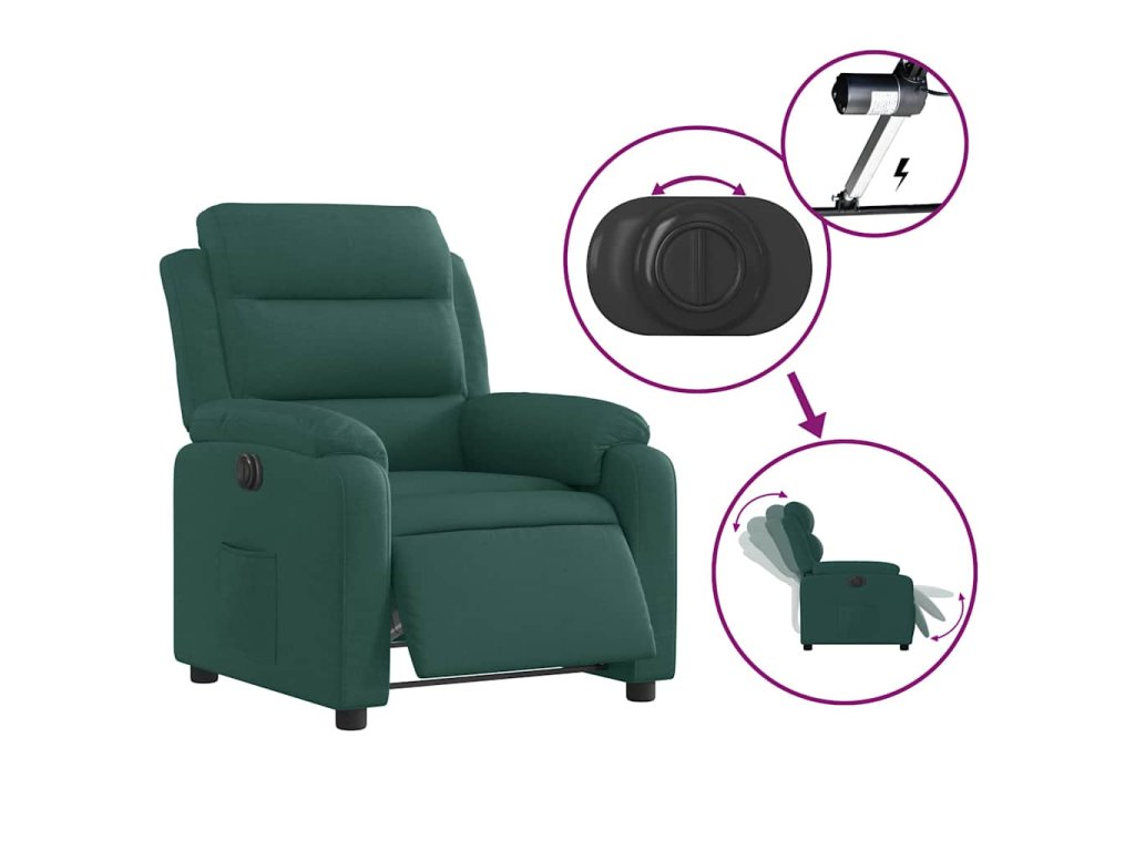 Multidom Elektrické sklápacie kreslo tmavozelené látkové