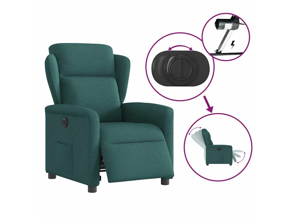 Multidom Elektrické sklápacie kreslo tmavozelené látkové