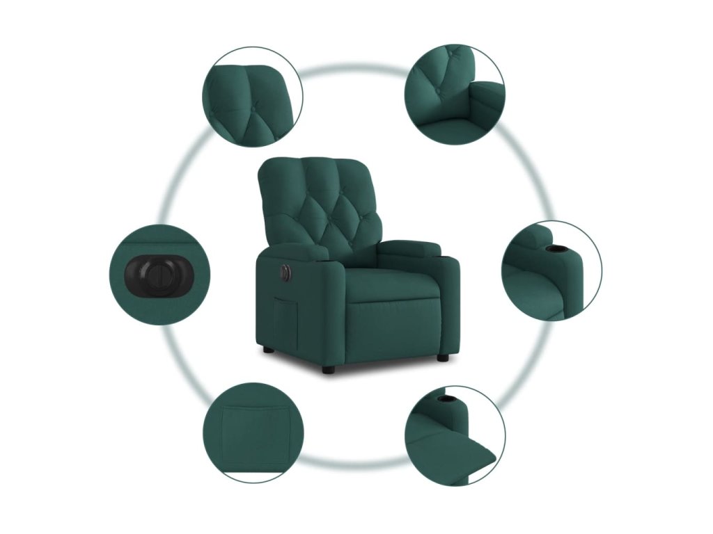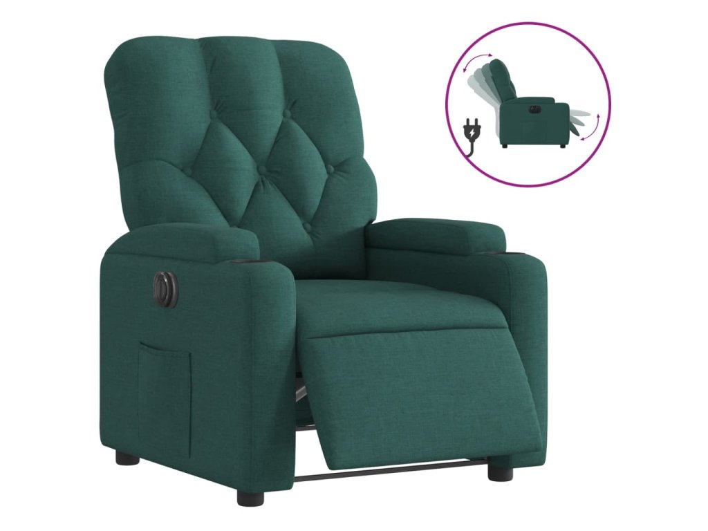 Multidom Elektrické sklápacie kreslo tmavozelené látkové