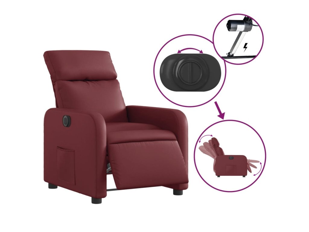 Multidom Elektrické sklápacie kreslo vínové červené umelá koža