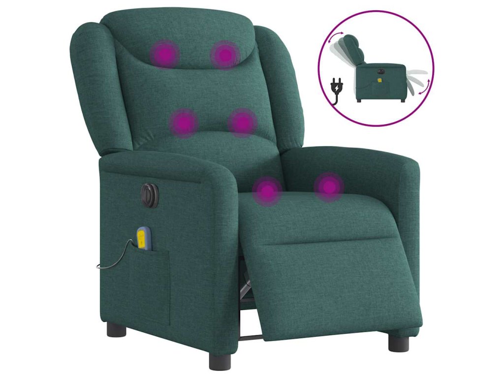 Multidom Elektrické sklápacie masážne kreslo tmavozelené látka