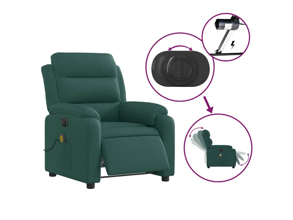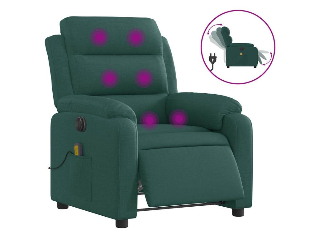 Multidom Elektrické sklápacie masážne kreslo tmavozelené látka
